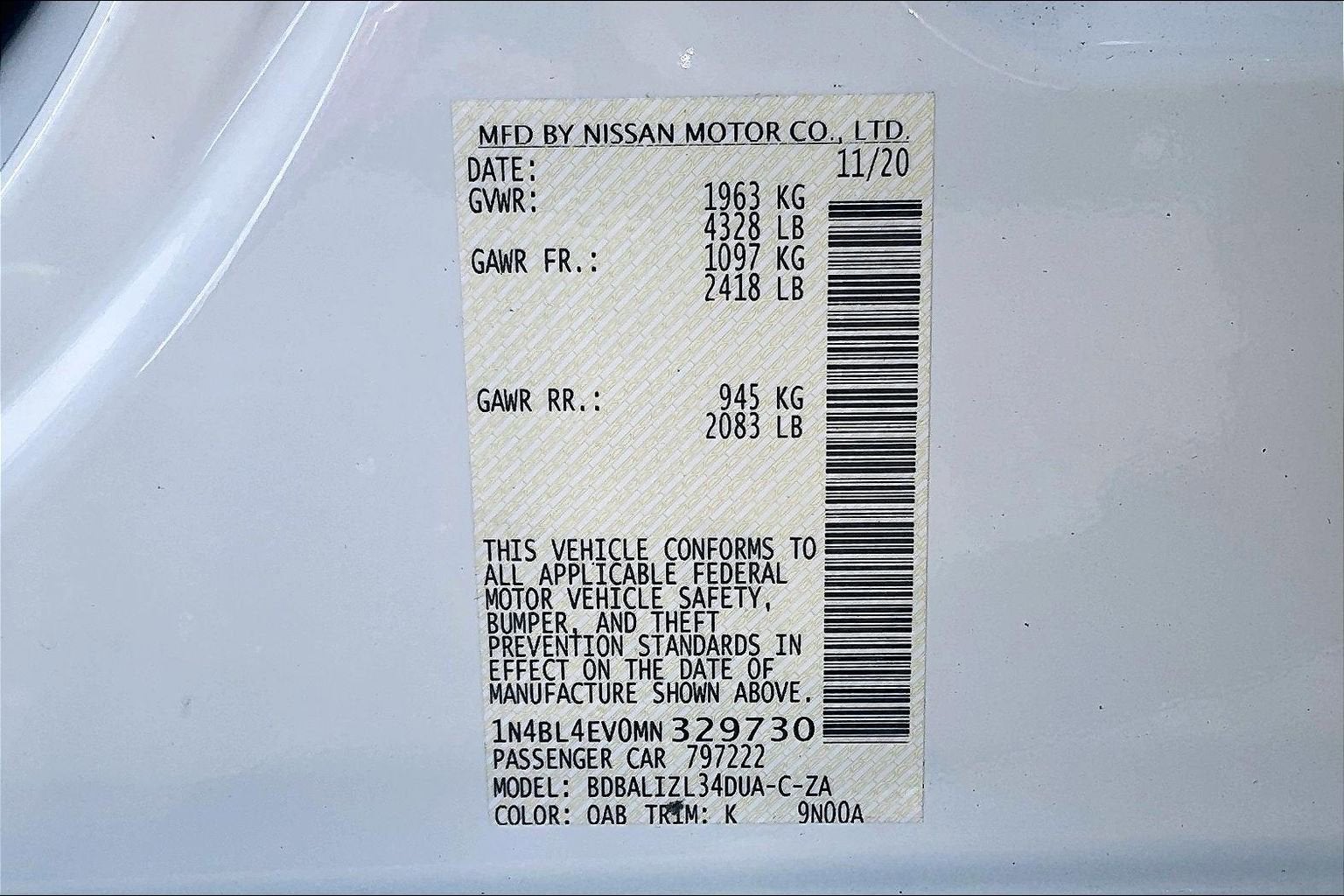 - Vehicle Name: Nissan Altima