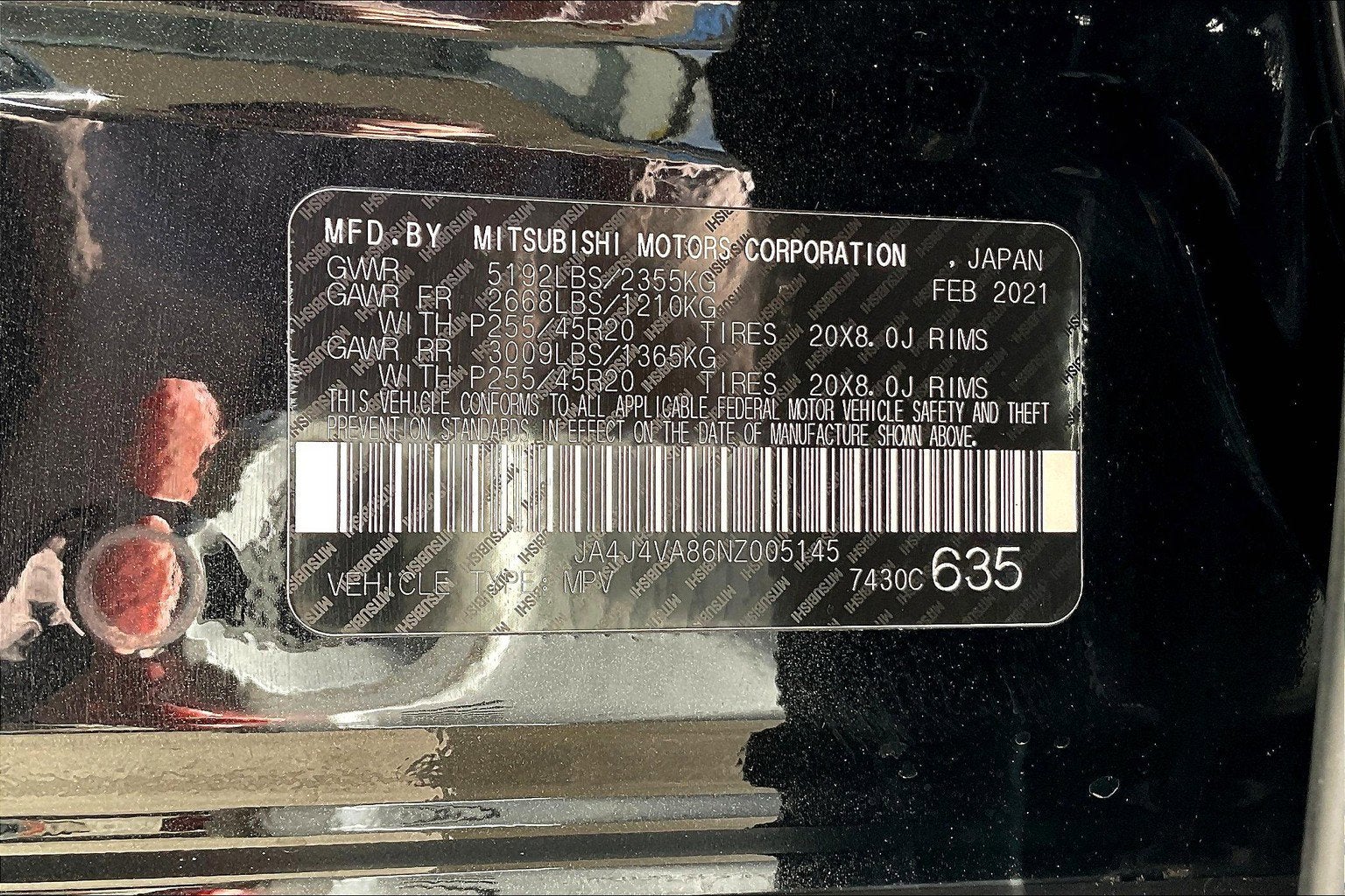 - Front Tire Size: P255/45WR20