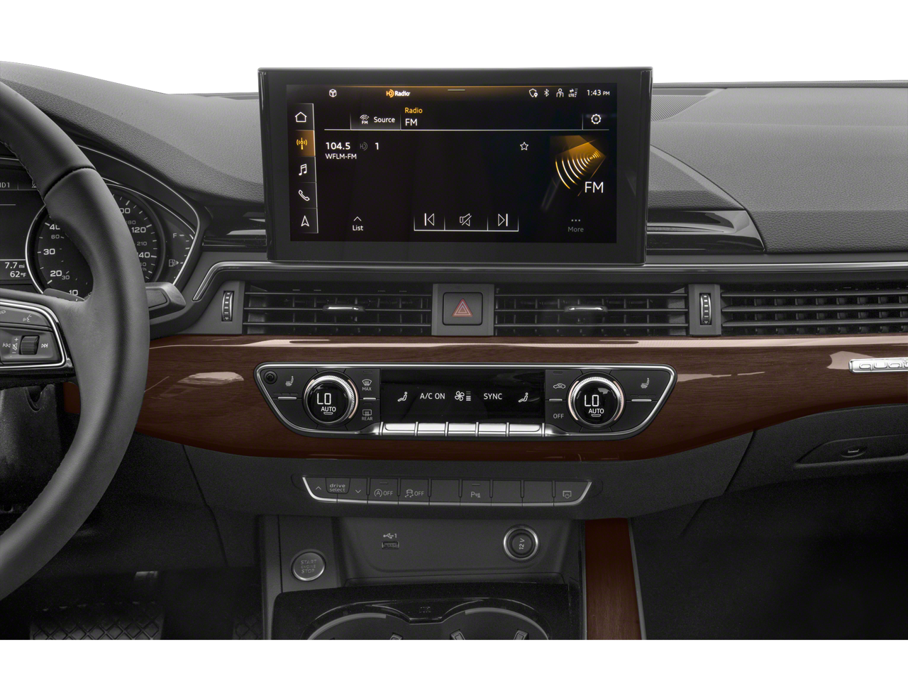 - Radio: Audi Sound System -inc: Audi connect CARE (limited time subscription), Audi smartphone interface w/wireless Apple CarPlay, MMI touch display w/10.1" center screen and preparation for mobile phone (Bluetooth®) w/streaming audio