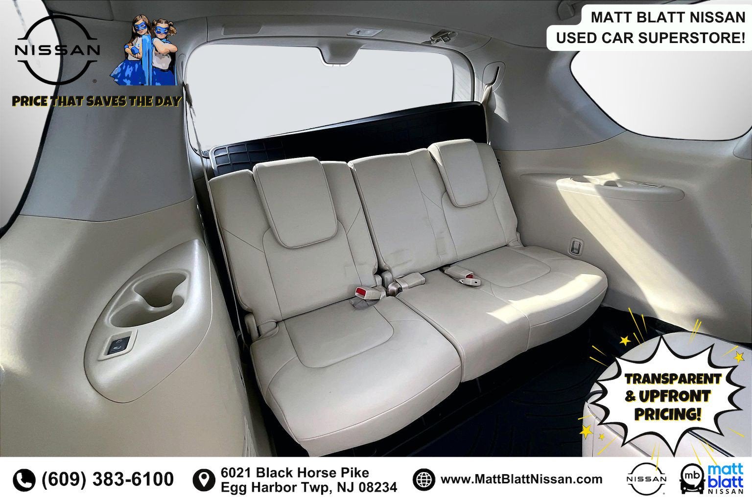 Matt Blatt has been serving New Jersey, Pennsylvania, Delaware, and New York for over 30 Years! Matt Blatt NISSAN is fully committed to maintaining a customer-first approach. Our team of professionals is dedicated to keeping the process quick and easy, putting YOU in control of the whole experience. We look forward to providing you with the finest vehicles and services! Buy with confidence knowing this vehicle has earned its place in our inventory by passing our rigorous multi-point inspection and reconditioning process by our 100% Certified Technicians and it is ready for many miles of reliability and comfort. TRANSPARENT & UPFRONT PRICING WITH NO HIDDEN FEES. We are constantly updating and strategically pricing our inventory to make sure you get a great price without having to be a great negotiator. Carfax is available free of charge on all of our vehicles.