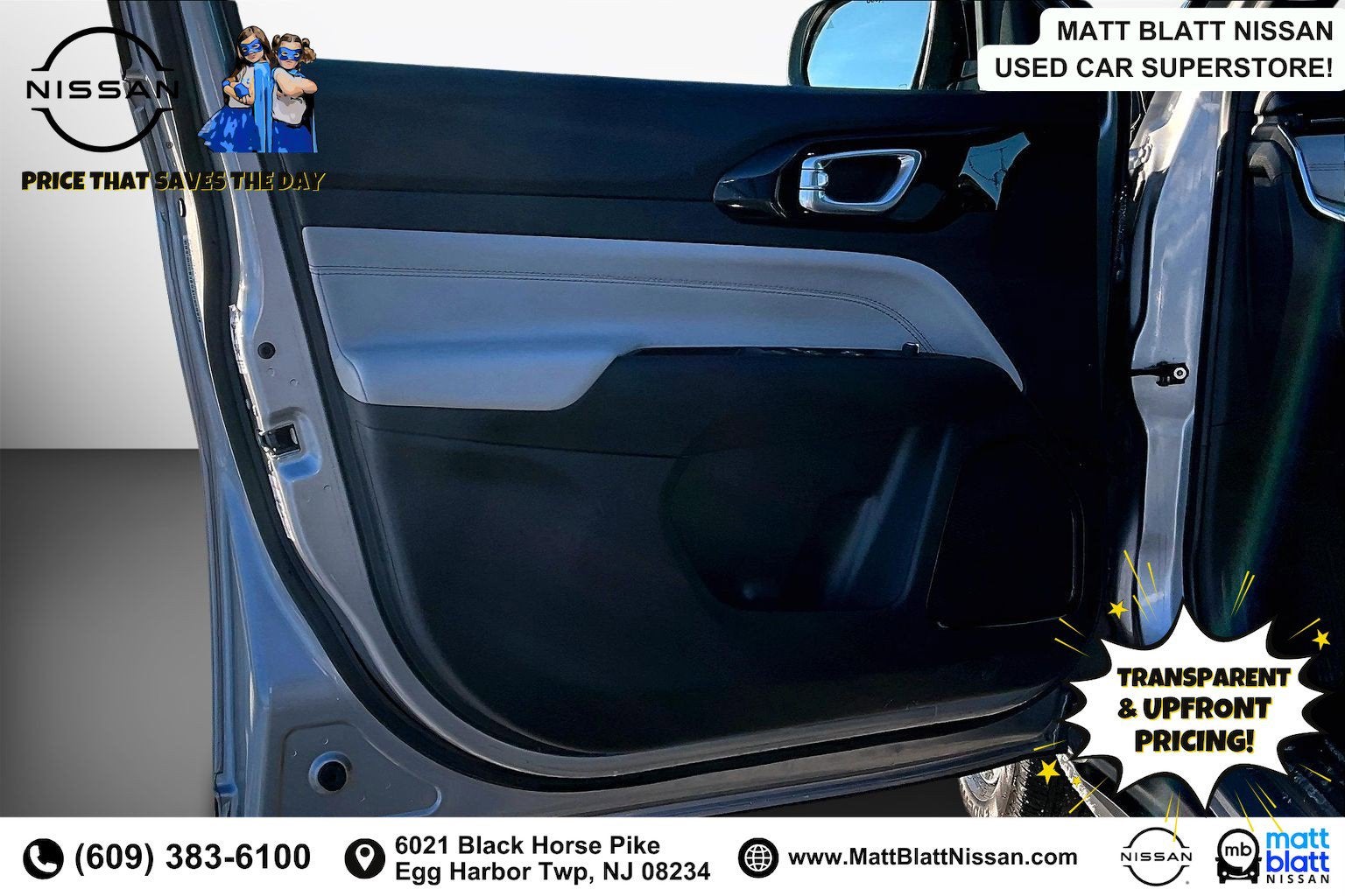 Matt Blatt has been serving New Jersey, Pennsylvania, Delaware, and New York for over 30 Years! Matt Blatt NISSAN is fully committed to maintaining a customer-first approach. Our team of professionals is dedicated to keeping the process quick and easy, putting YOU in control of the whole experience. We look forward to providing you with the finest vehicles and services! Buy with confidence knowing this vehicle has earned its place in our inventory by passing our rigorous multi-point inspection and reconditioning process by our 100% Certified Technicians and it is ready for many miles of reliability and comfort. TRANSPARENT & UPFRONT PRICING WITH NO HIDDEN FEES. We are constantly updating and strategically pricing our inventory to make sure you get a great price without having to be a great negotiator. Carfax is available free of charge on all of our vehicles.